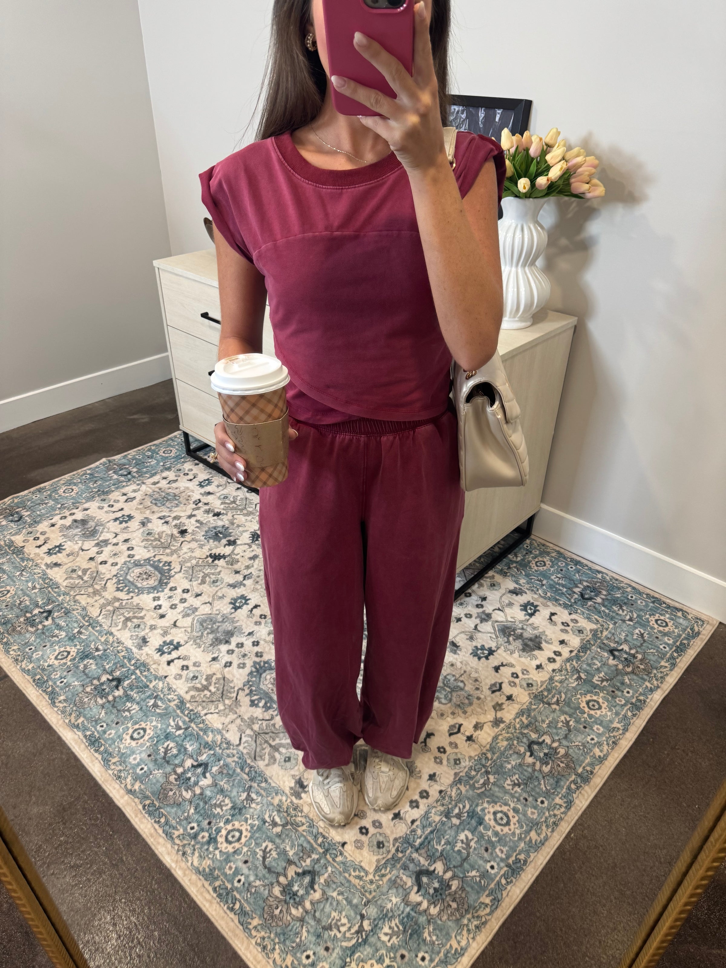 This set is perfect for any fall weather. The pants have the elastic band with pockets. It runs very true to size.