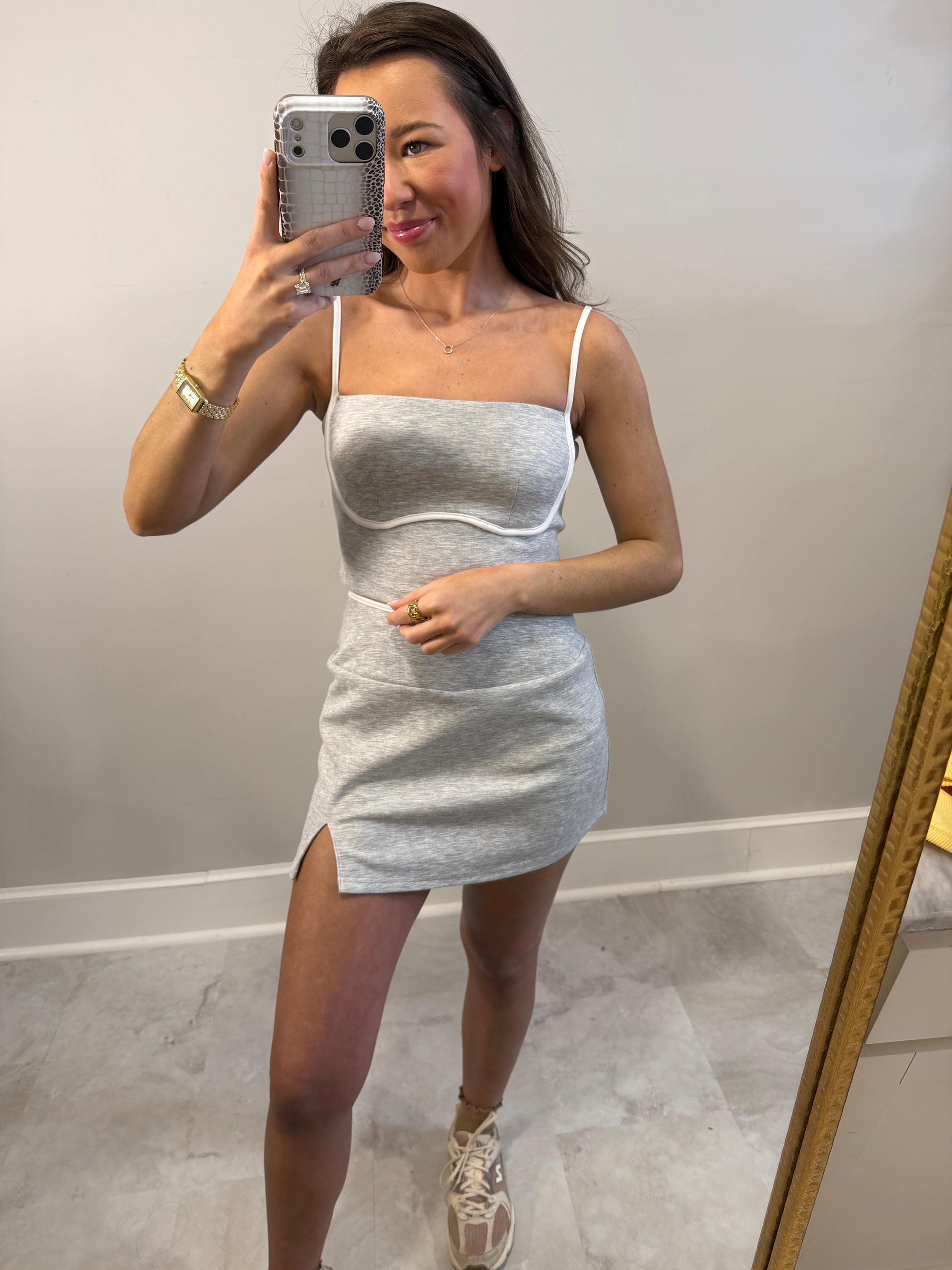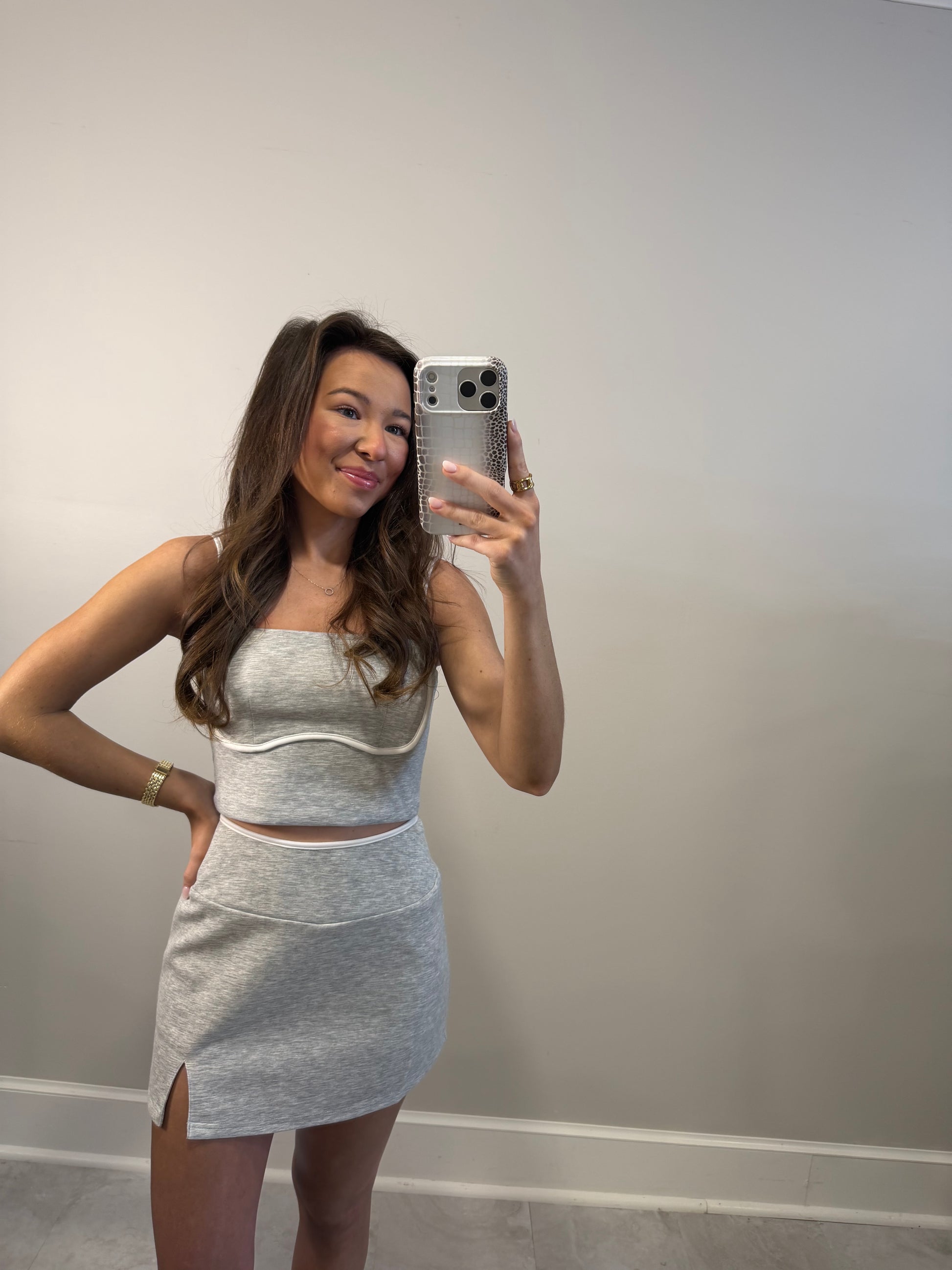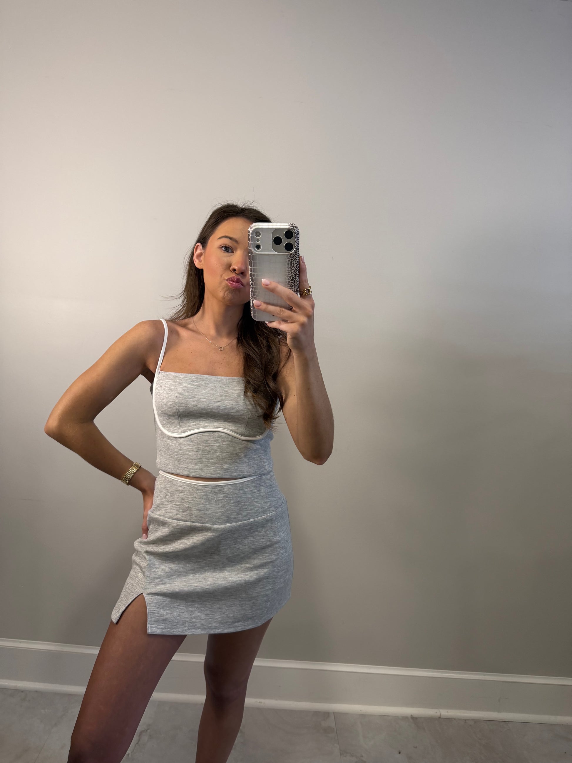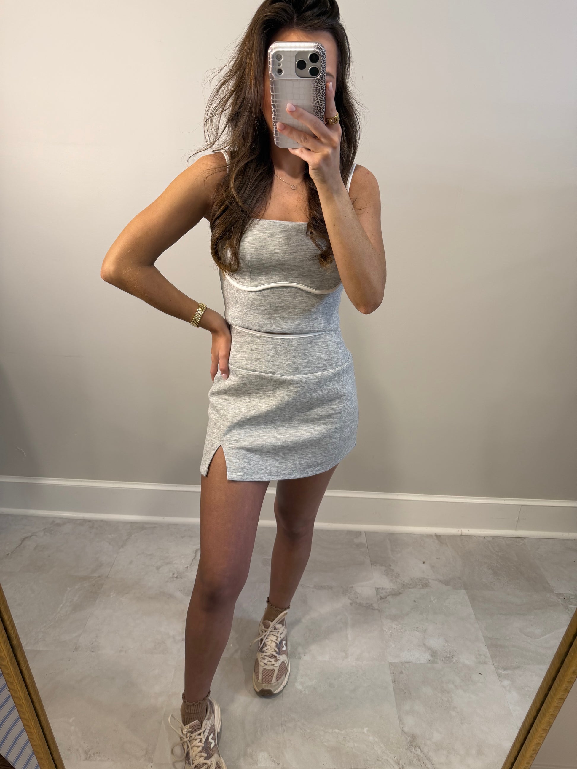 This set is incredibly soft and perfect to add ti your spring and summer wardrobe! The skirt has built in shorts and the top has adjustable straps! The model is 5’3 wearing a size small!!